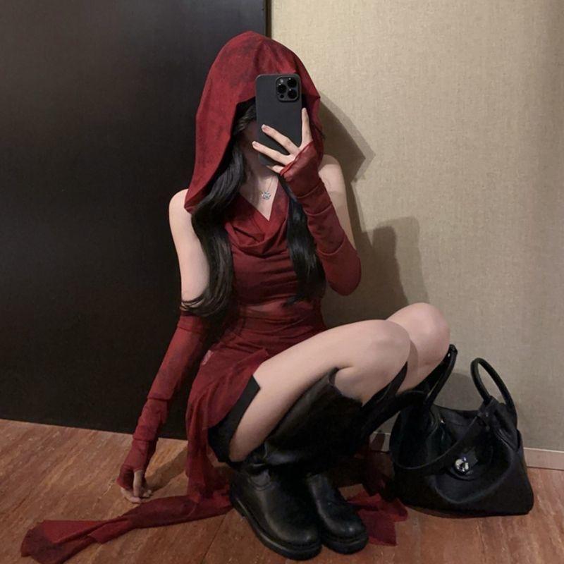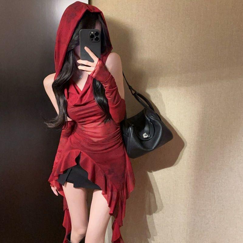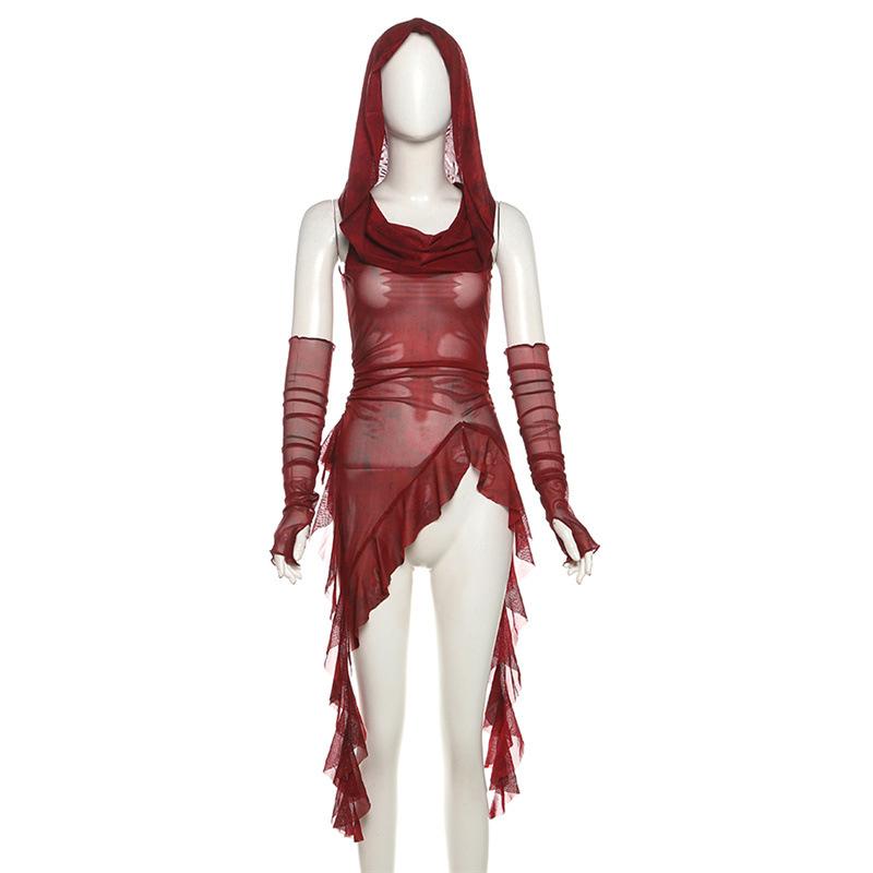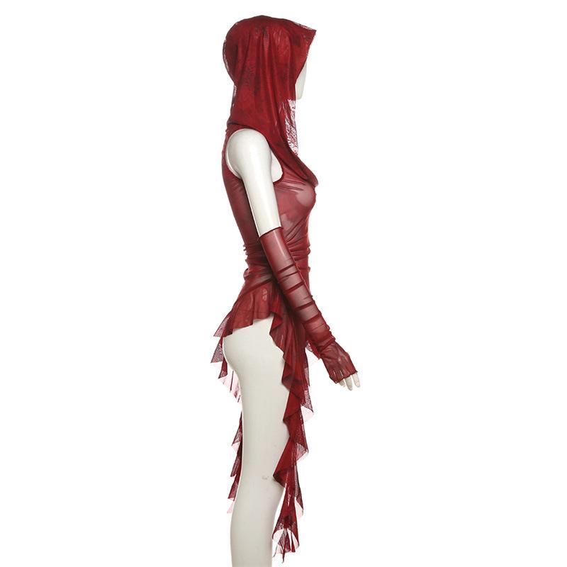2KWEIRD Уличная одежда 90-х Гранж Сетчатые Прозрачные Толстовки с капюшоном Кибер Y2K Неровный Подол Рюши Худи Женская Приталенная Блузка с манжетами