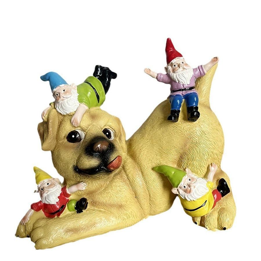 Креативные уличные скульптуры собаки и гнома, рождественские статуи животных, садовое художественное украшение, украшение двора и дома, настольное украшение