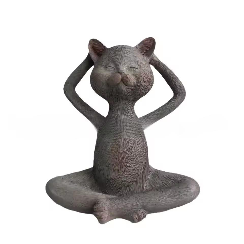 Фигурка кошки для йоги Креативная милая статуэтка смеющейся кошки Причудливая кошка для йоги Декор кошки из смолы Дизайн статуэтки забавного потягивающегося котенка Кошка
