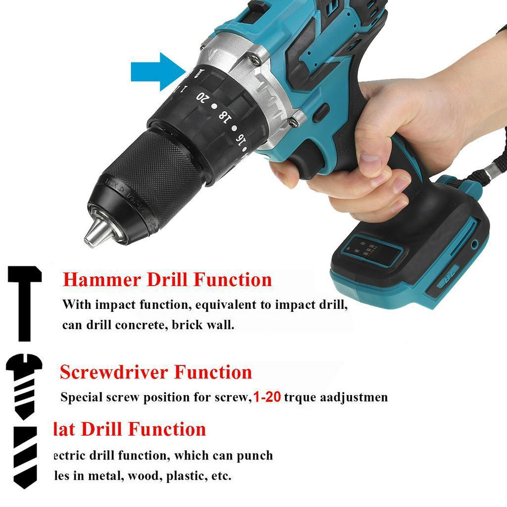 - 3 IN 1 Функция перфоратора / Функция отвертки / Плоская функция сверла.