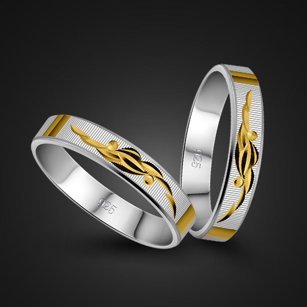 Посеребренное кольцо для пары из серебра S925, мужское и женское цветное кольцо с цветком, обручальное кольцо, простые украшения — купить товар онлайн с бесплатной доставкой по всему миру!