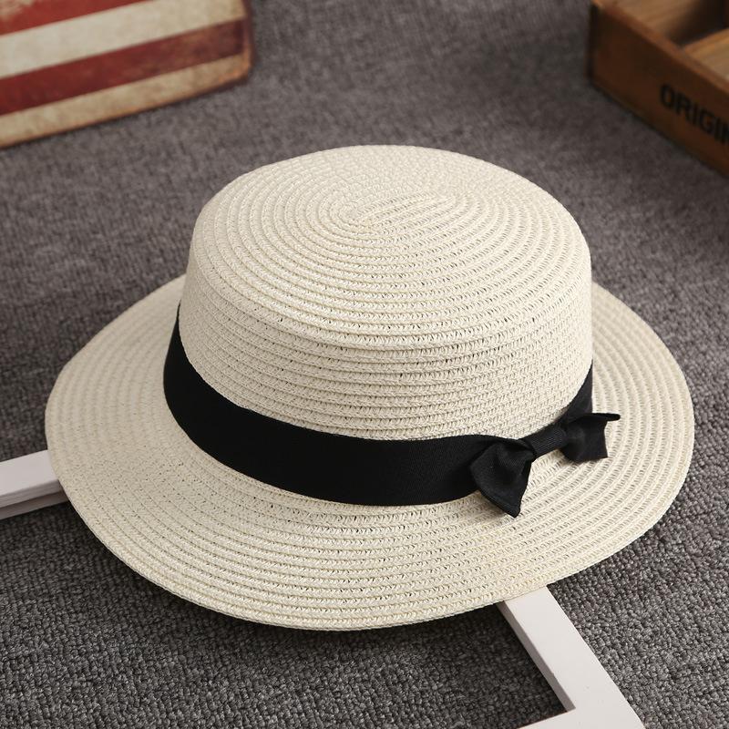 Соломенная шляпа женская летняя британская ретро плоская макушка маленькая свежая шляпка солнцезащитная шляпа от солнца пляжная шляпа для путешествий тренд лето