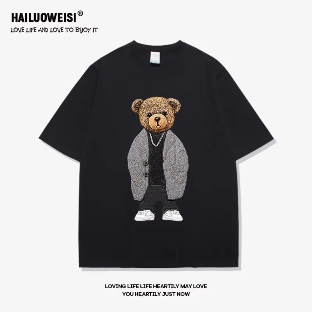 Летняя модная мужская футболка высокого класса с принтом «Маленький медведь» из 100% хлопка с круглым вырезом для отдыха и фитнеса
