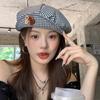 Осень новая нишевая клетчатая беретка с пуговицей женское лицо маленькая облачная шляпа художника модная с высоким чувством