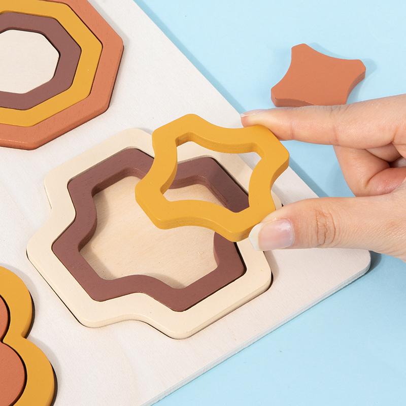 Развивающая деревянная игра с геометрическими фигурами Монтессо Обучение Математике Пазл Доска для детей Сортировка Складывание Познавательные игрушки