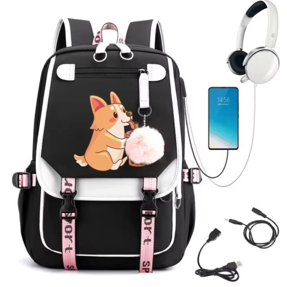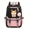 Милый рюкзак с принтом корги, пьющего молочный чай, для ученика средней школы, старшеклассника, большой вместимости, дорожная сумка