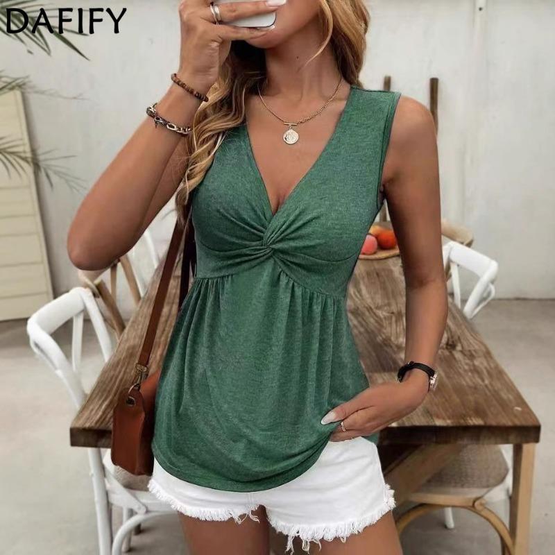 DAFIFY Женские модные повседневные летние весенние однотонные блузки и рубашки без рукавов с v-образным вырезом и принтом — купить товар онлайн с бесплатной доставкой по всему миру!
