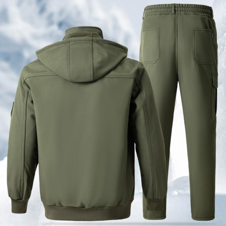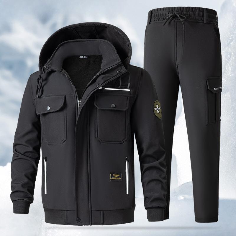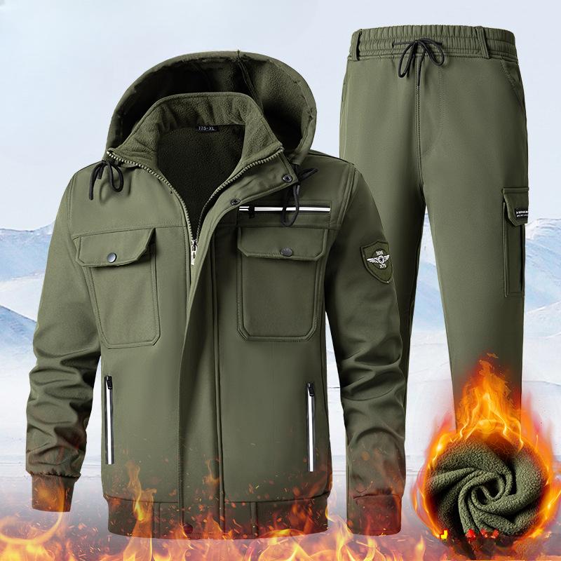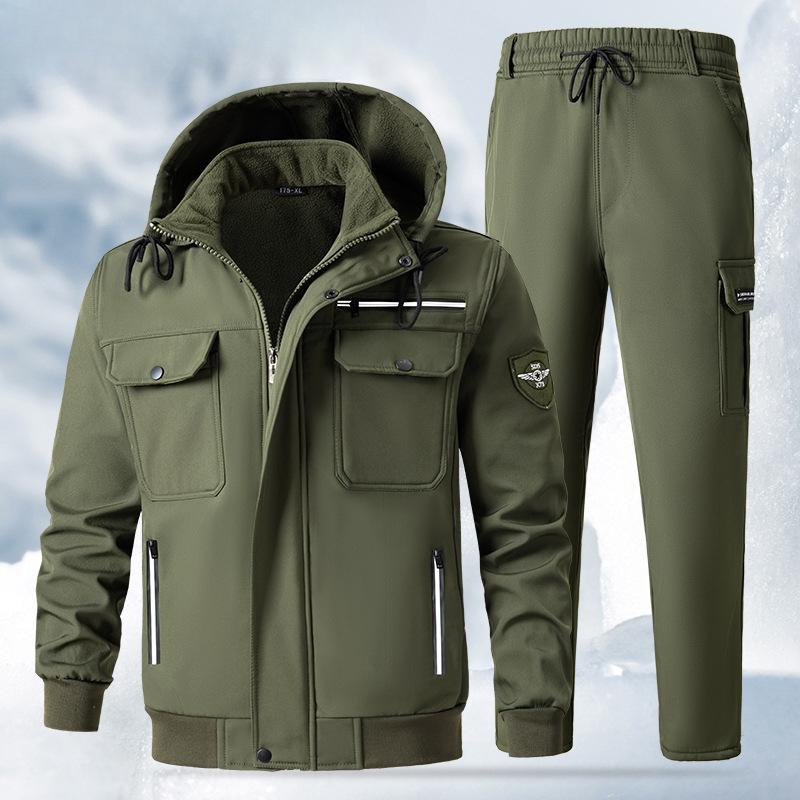 Мужской осенне-зимний уличный комбинезон с утолщенным плюшевым подкладом, холодостойкая теплая куртка, водонепроницаемый