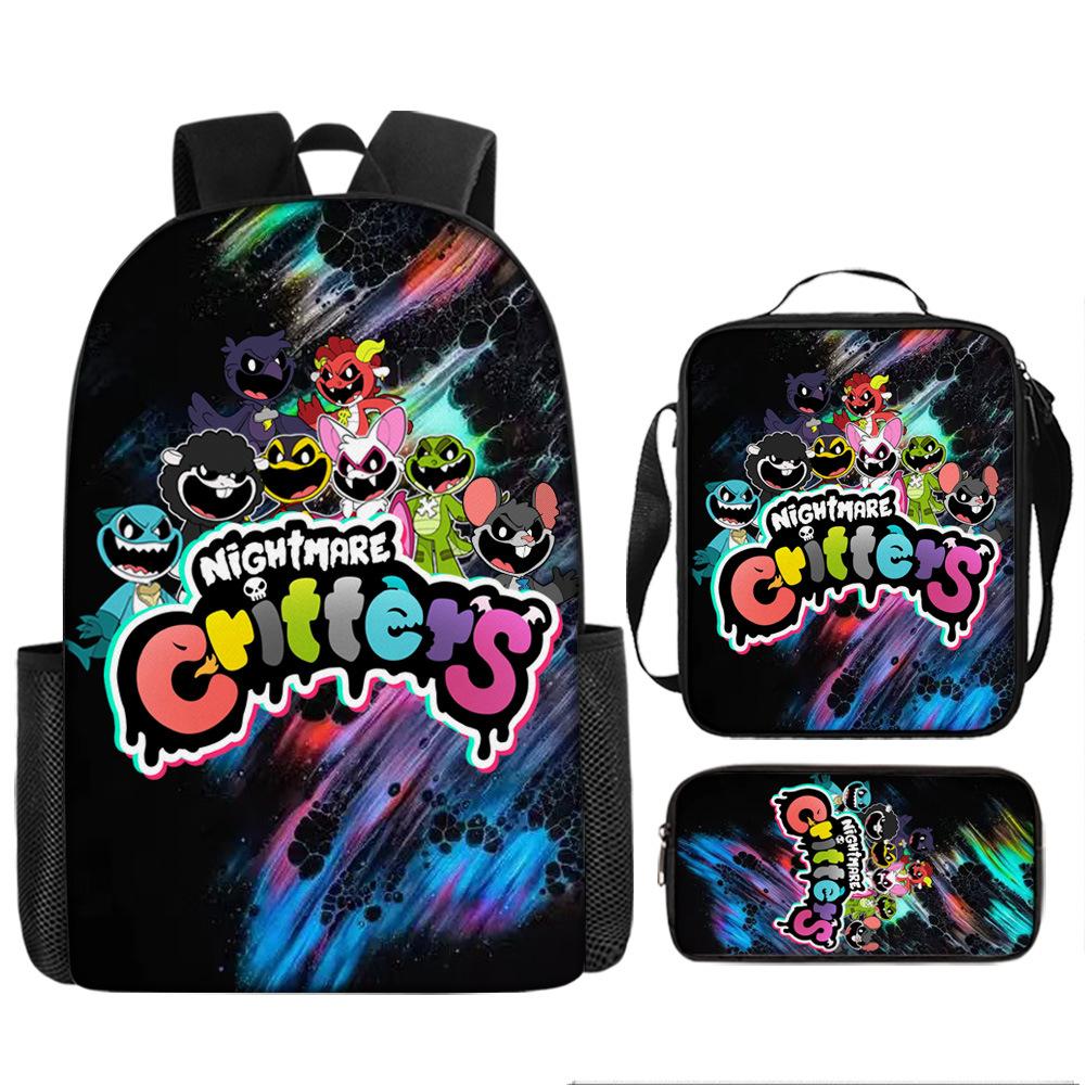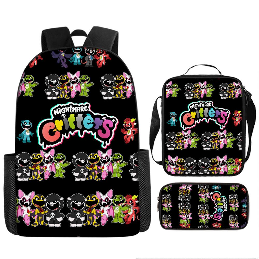Набор из 3 предметов: школьная сумка Poppy's Playtime 4 Elementary School Bag и рюкзак Nightmare Critters большой вместимости.