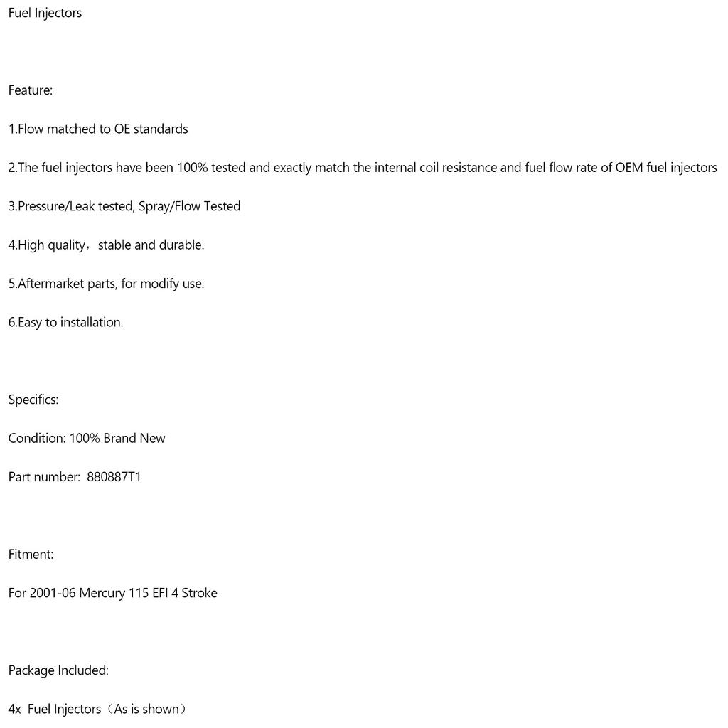 4 шт. топливные форсунки 880887T1 для Mercury 115 EFI 4-тактный 2001-2006