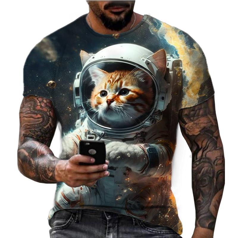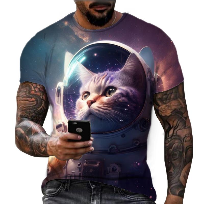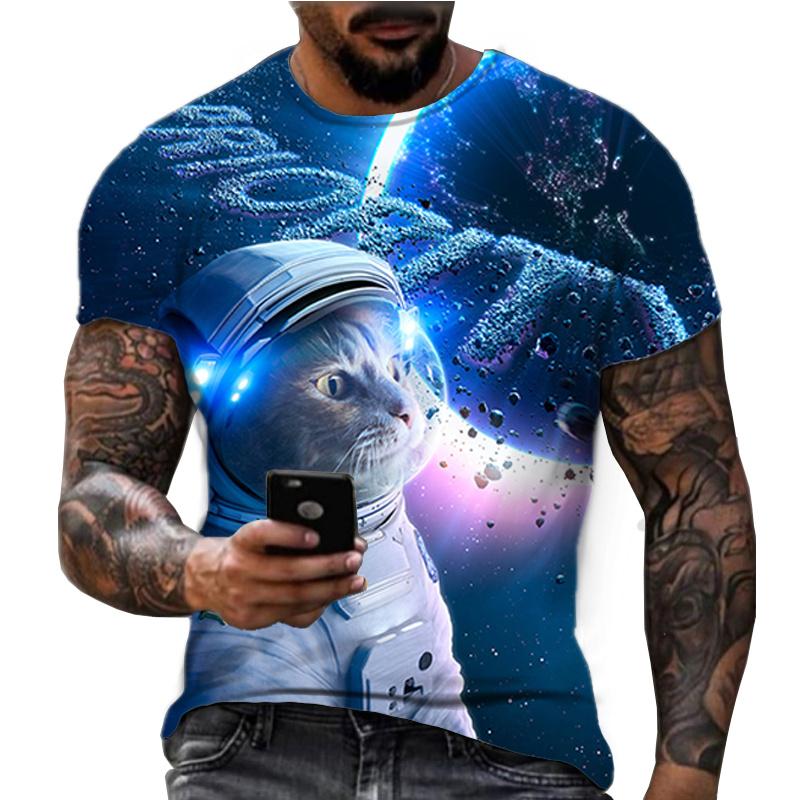 Летняя футболка с круглым вырезом, с принтом кота-астронавта, 3D-печать, модная, повседневная, с коротким рукавом, мужская