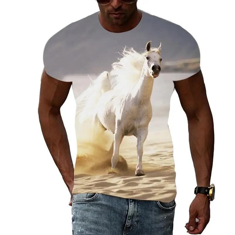 Новая Мода Рисунок Лошади 3D Принт Мужская Хип-Хоп Персонализированная Футболка с Круглым Вырезом и Коротким Рукавом