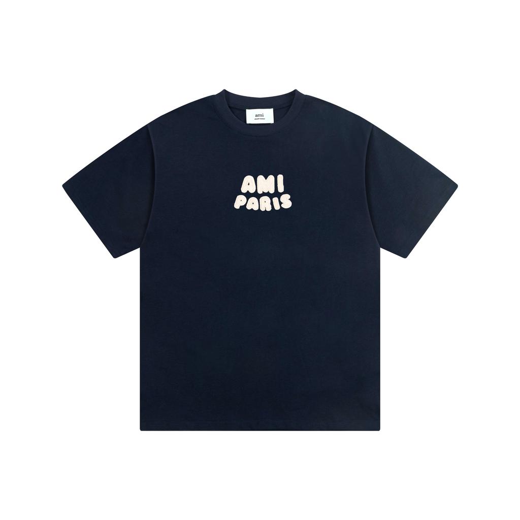 AMI Весенне-летняя новая вязаная крючком футболка с коротким рукавом для пар с надписью из переплетения букв и микроэтикеткой из чистого хлопка