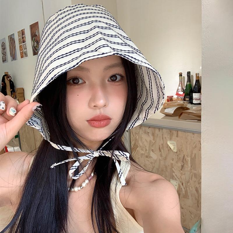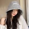 Новая полосатая шляпа-ведро с большими полями, весна и лето, шляпа для маленького лица, женская нишевая шляпа от солнца, солнцезащитная шляпа-ведро, тренд