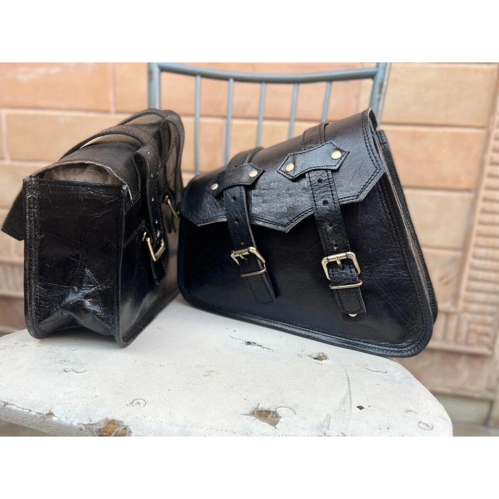 Bag Leather Motorcycle Combo Goat Black Saddle Tool Panniers Pouch Side Genuine