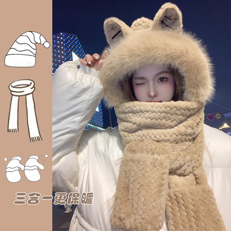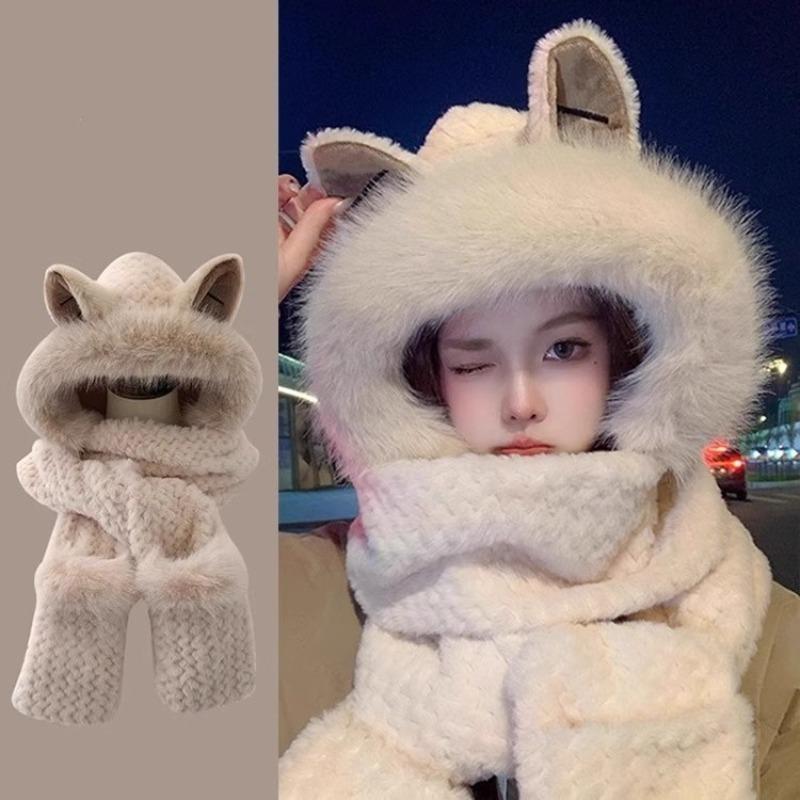 Милая шапка Али шарф интегрированный женская зимняя с капюшоном женская защита ушей плюшевая теплая защита шеи зимняя
