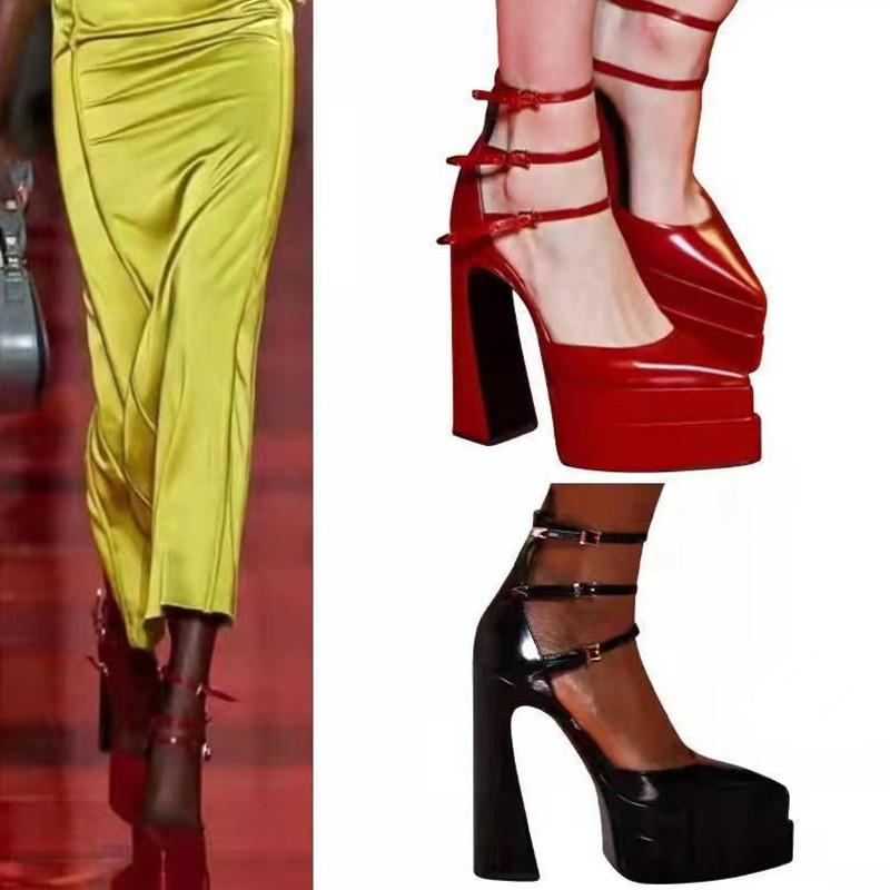 Модные подиумные туфли на танкетке, женские туфли-лодочки, модные с острым носком, с ремешком на щиколотке, Мэри Джейн, на высоком каблуке, летние, женские, свадебные туфли для невесты