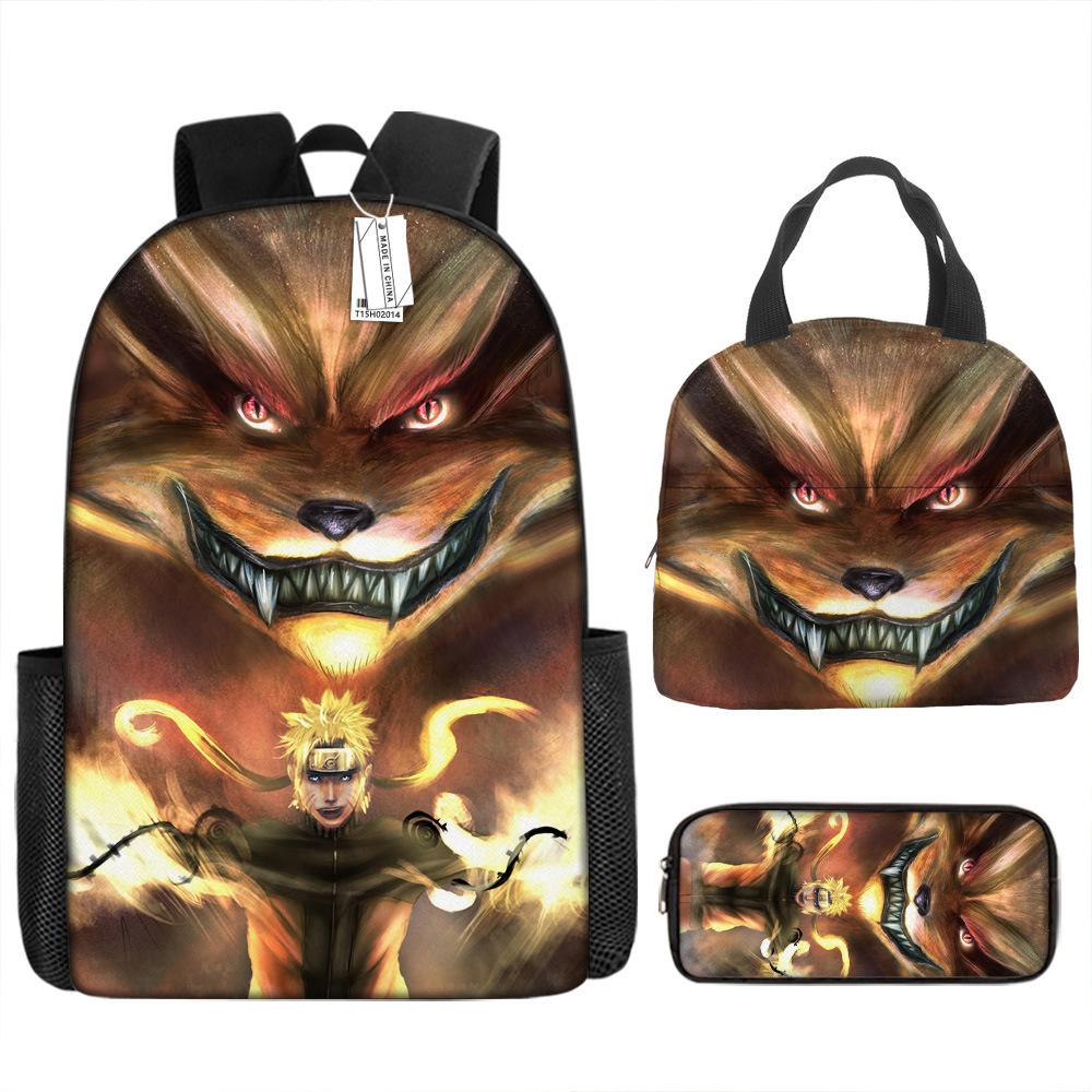 Рюкзак Наруто Рюкзак для начальной школы для мальчиков Рюкзак большой вместимости Сумка для ланча Пенал Набор из трех предметов