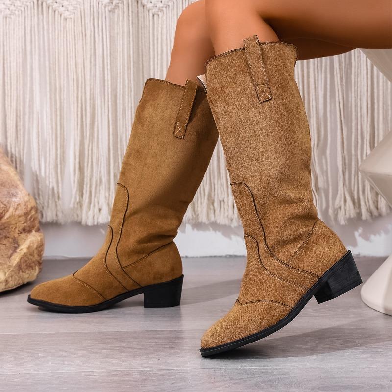 Модные массивные женские ботфорты до колена, модные замшевые туфли на среднем каблуке для ходьбы, 2025, зимние дизайнерские туфли-лодочки, ботинки челси, платье Femme Zapatos