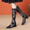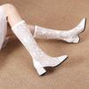 Модные женские сандалии-ботинки до колена FHC, летняя сетчатая обувь, длинные боты с вышивкой кружевом в виде цветов, острый носок, молния сзади, черные, белые, дропшиппинг