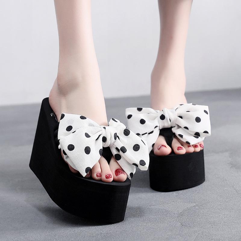 Модные женские летние пляжные шлепанцы с бантиком, танкетки, шлепанцы, женские модные шлепанцы, мягкая платформа из ЭВА, женские сандалии на высоком каблуке — купить товар онлайн с бесплатной доставкой по всему миру!