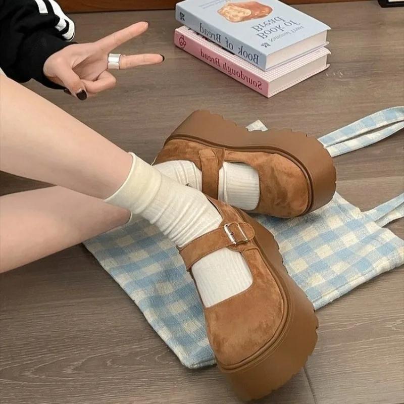 Модная женская обувь 2025 Модные туфли-лодочки на высоком каблуке с ремешком и пряжкой Женские туфли на танкетке Женские Новые туфли с круглым носком на платформе Zapatos