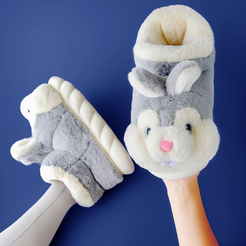 Модные женские зимние теплые ботинки 2025 плюшевая подкладка домашние хлопковые тапочки милый кролик мягкий мех парная платформа высокий верх зимние ботинки
