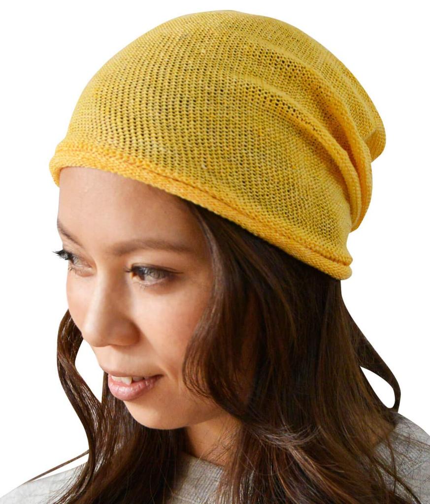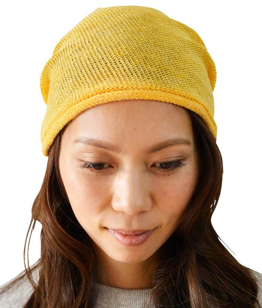 Nakota EdgeCity Бесшовная вязаная шапка-бини из конопли, Желтая шапка, Шапка, Мужская Женская, Япония, M, (51)