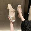 Модные женские мюли на каблуке, тапочки и женские сандалии, зеленые шлепанцы, летняя обувь из ПВХ, в продаже, шикарные, элегантные, по низкой цене, стильная обувь