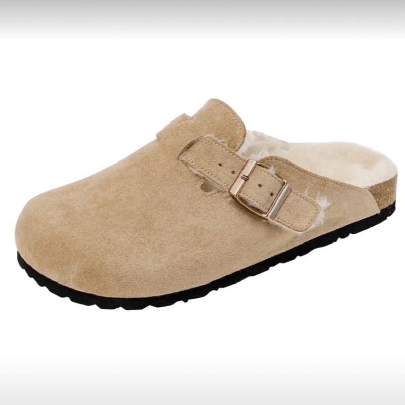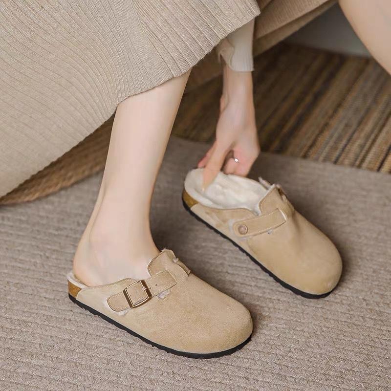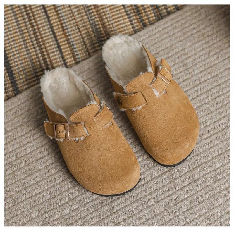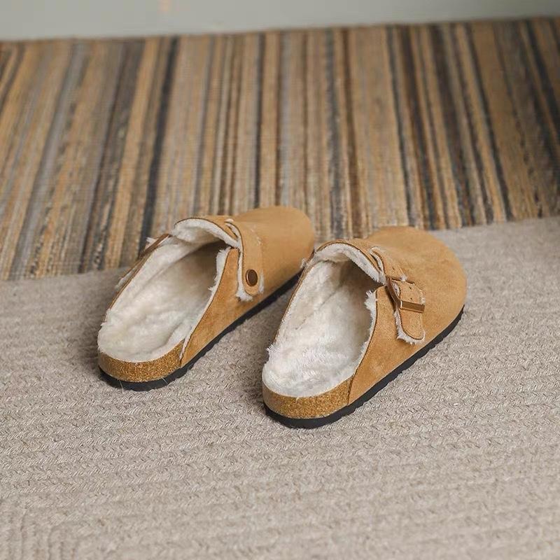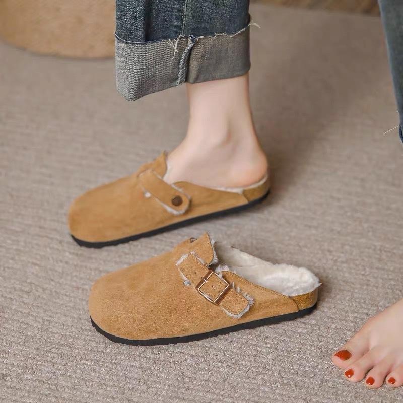 Модные новые женские тапочки Осень Зима Кожаные тапочки с круглым носком Пара тапочек Уличные повседневные Сохраняющие тепло Женские замшевые шлепанцы