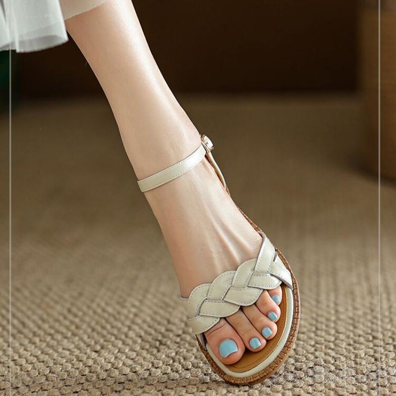 Fashion Shoes Female Sandal 2025 Women's Girls Beige New Summer Comfort Low Retro Flat Back Strap Square heel Rubber — купить товар онлайн с бесплатной доставкой по всему миру!