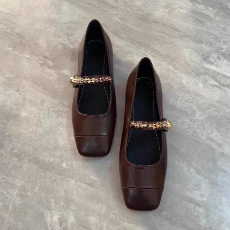 Мода 2025 новая обувь с квадратным носком для женщин новая весна-осень французские балетки кожаная обувь Мэри Джейн женская обувь на каблуке