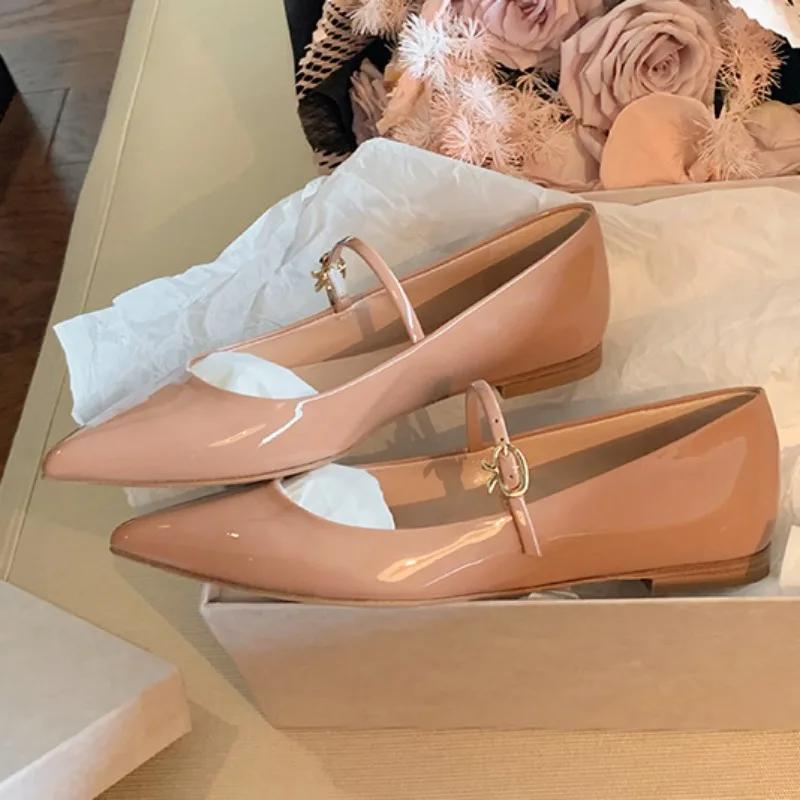 Модные женские балетки из мягкой кожи, элегантные, с острым носком и ремешком с пряжкой, больших размеров, весна 2025, телесного цвета, удобные для работы в офисе — купить товар онлайн с бесплатной доставкой по всему миру!