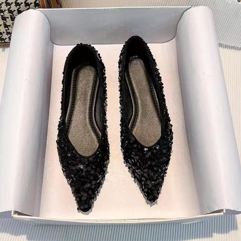 Модные дизайнерские туфли с пайетками 2025 Весна Новый стиль Модные туфли-лоферы с круглым носком Нескользящие на плоской подошве Повседневные Удобные С мелким вырезом Женские