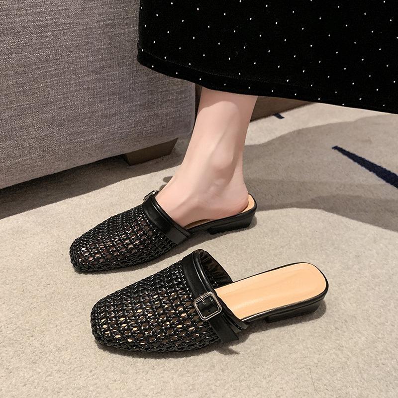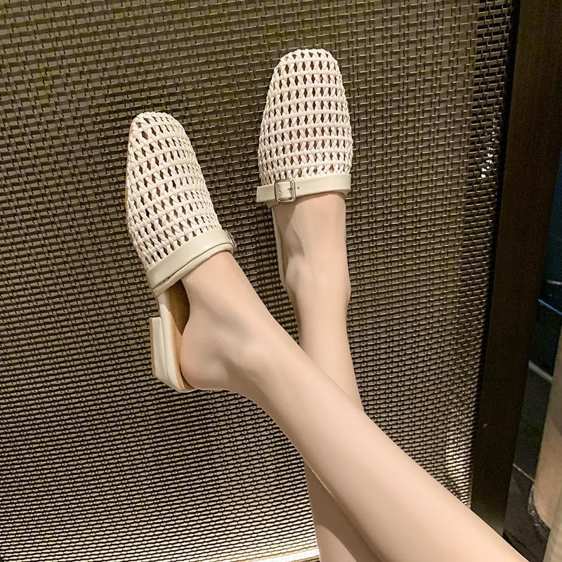 Модная женская сетчатая обувь-мюли, роскошные новые тапочки, балетки, сандалии 2025, дизайнерская обувь с вырезами, летние слинги, повседневная обувь с пряжкой, женская обувь