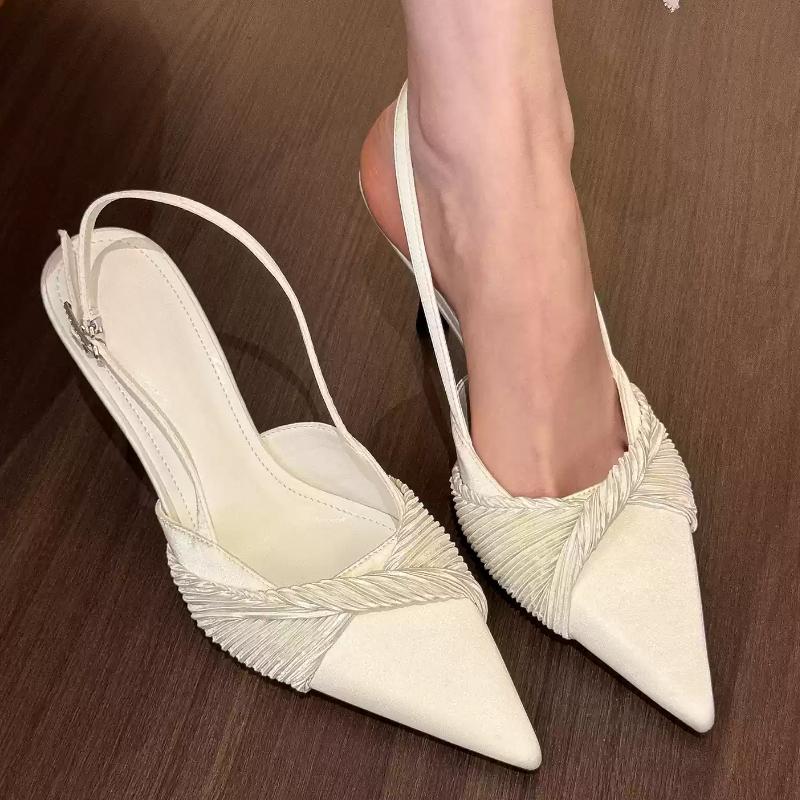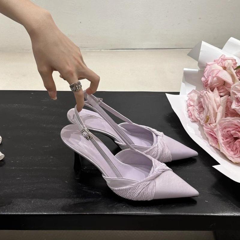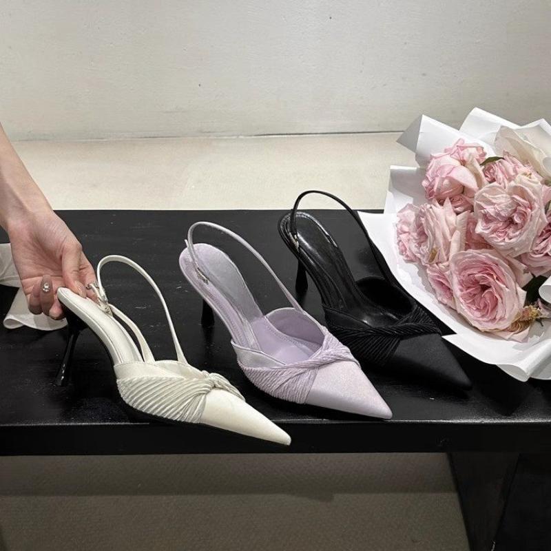 Мода Ретро Женская Обувь Сандалии на Остром Каблуке 2025 новый Летний Бант Девушки Высокие Закрытые Новые Открытые Модные Шпильки Задний Ремешок Бабочка