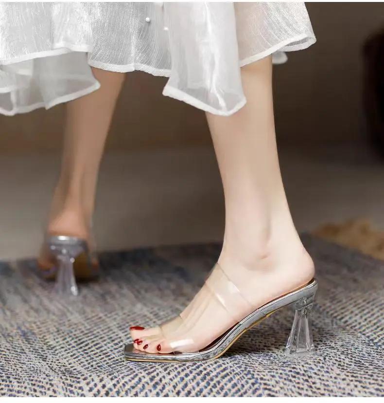 Модные летние женские туфли-лодочки, сандалии из ПВХ, желеобразные тапочки с открытым носком, высокие каблуки, женские прозрачные тапочки из плексигласа, прозрачные сандалии на каблуке