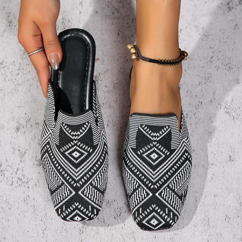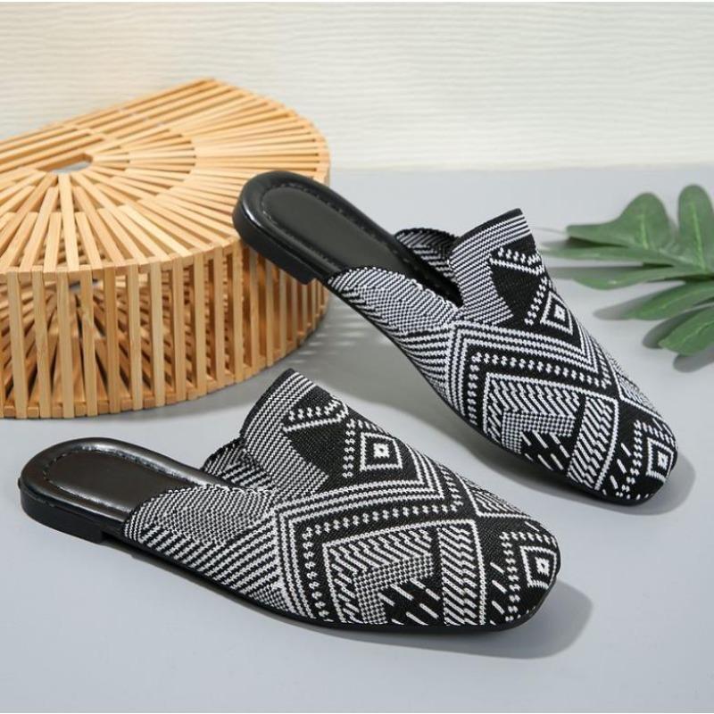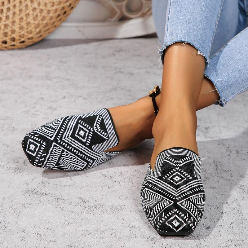 Мода Новый Стиль Мода Полосатые Лоферы Обувь Женская Летняя Слипоны Дышащая Вязаная Плоская Обувь Женская Комфорт Нескользящая Мягкая Подошва Сандалии