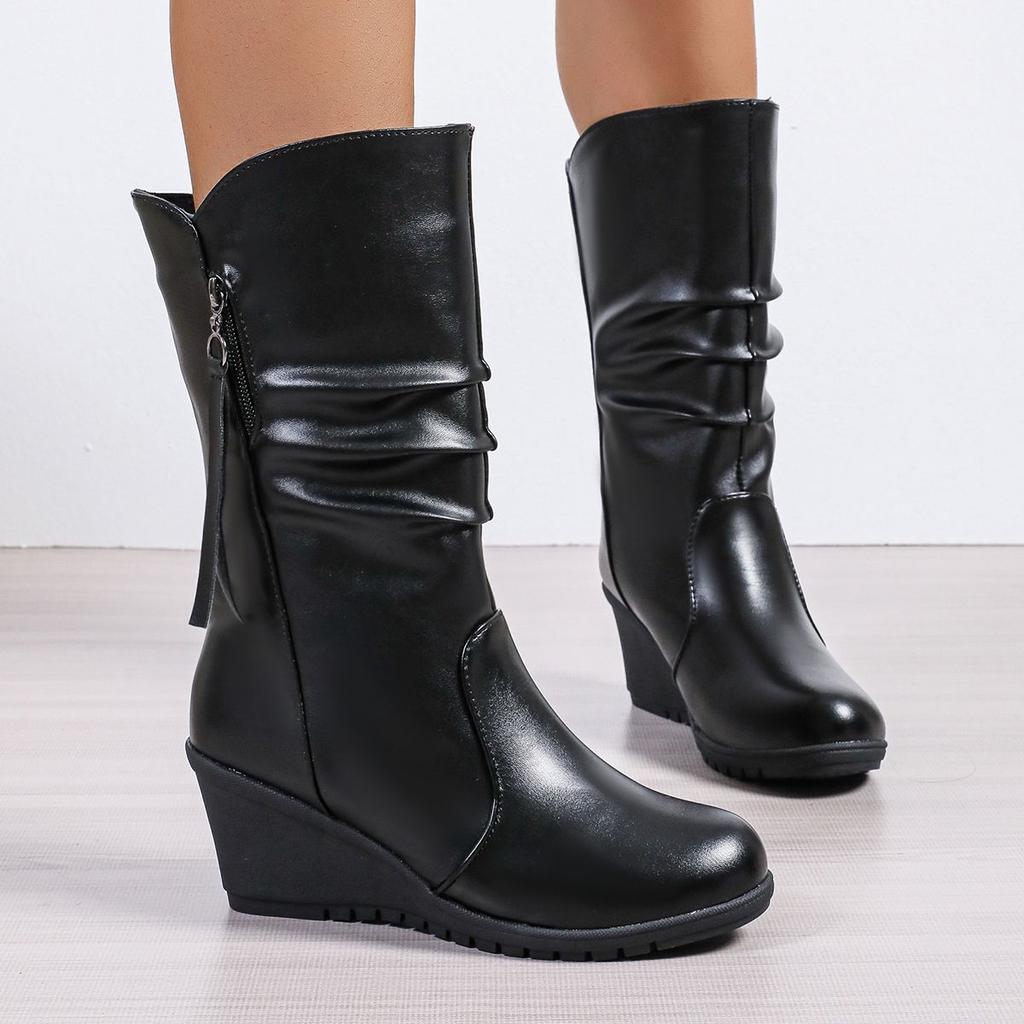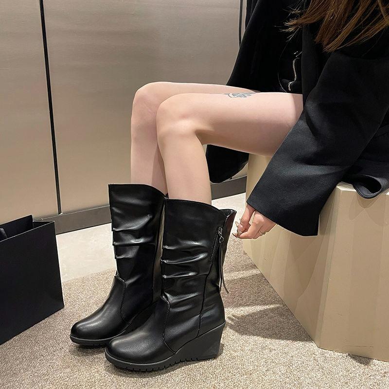 Модные элегантные женские теплые полусапоги из черной кожи на каблуке, новинка тренда Y2k, с круглым носком, осень-зима 2025