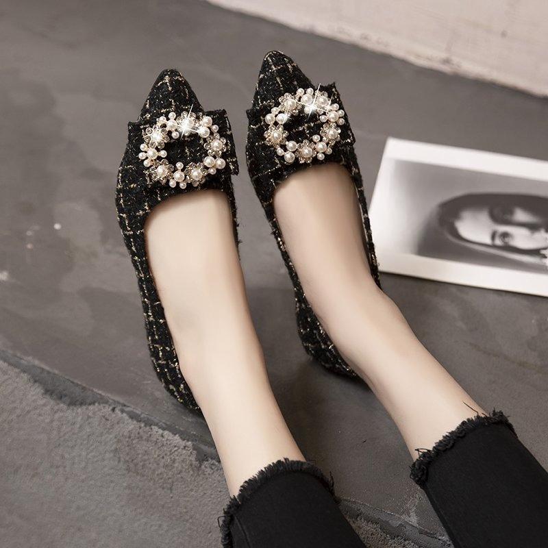 Мода 2025 Новая обувь с мелким вырезом Осенние женские мокасины Повседневные женские кроссовки Жемчужная отделка Балетки Модные Низкий каблук Заостренный носок