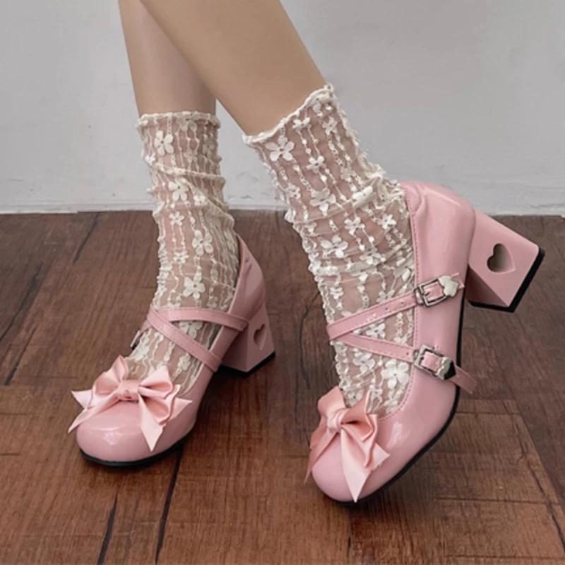 Мода Мода Розовые туфли Мэри Джейн для женщин Весна Новый дизайн Кожа Низкий каблук Женские Туфли для вечеринки с шелковым бантом и ремешком на щиколотке