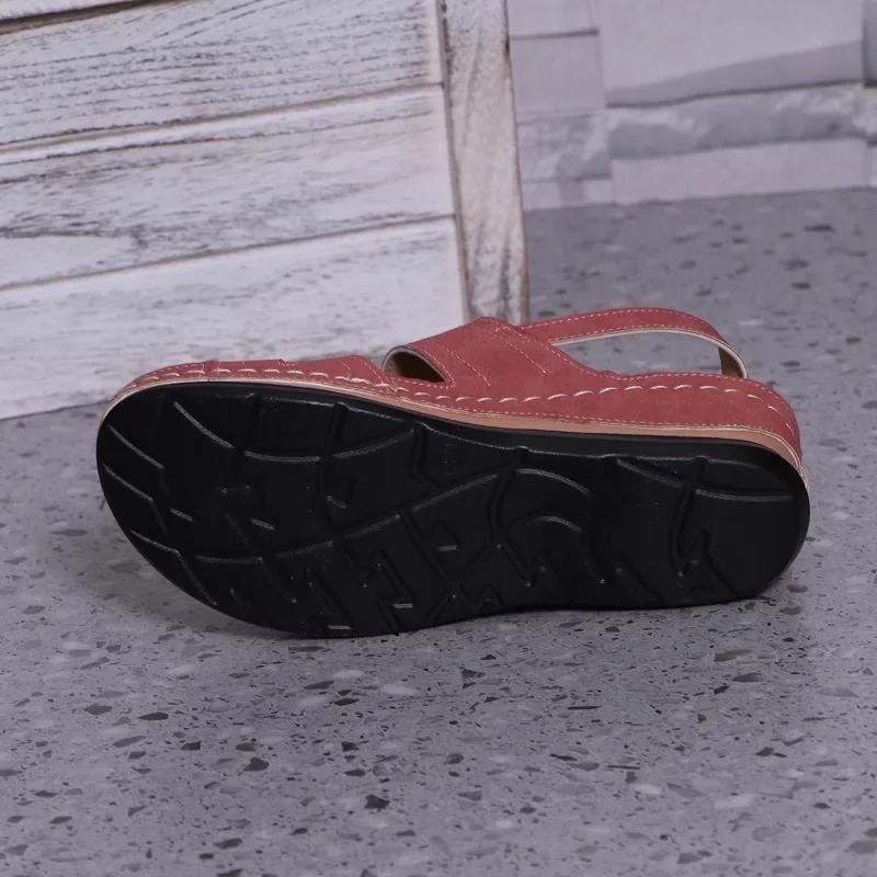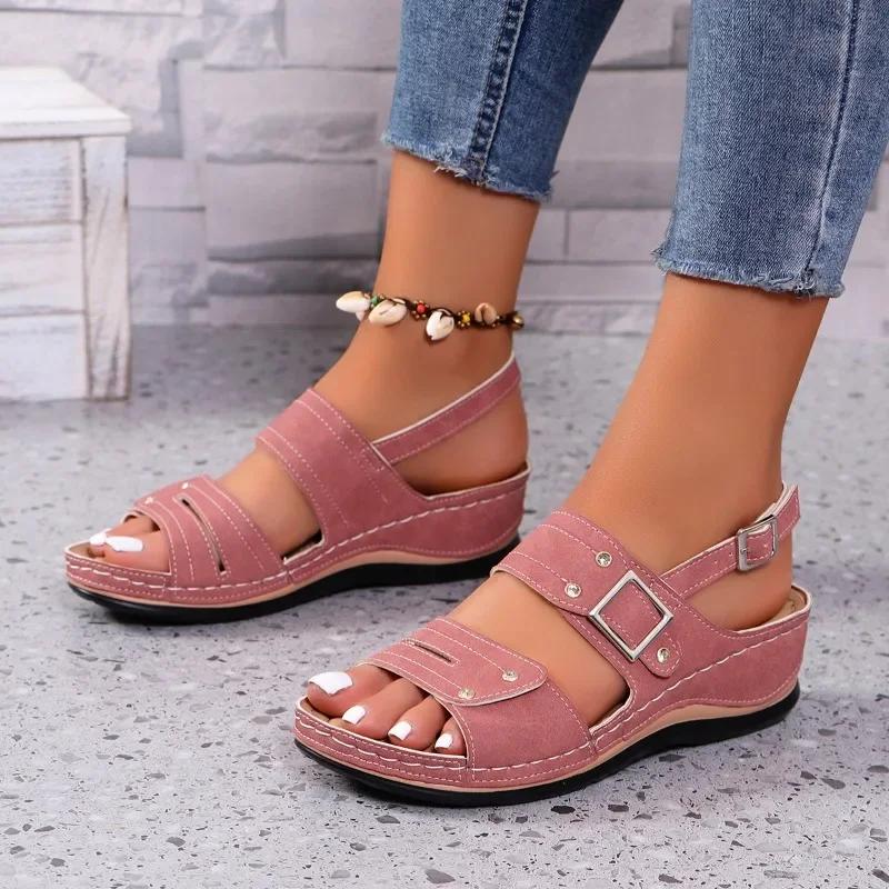Fashion 2025 Hot Sale Female Shoes Rome Sandals Outdoor Casual Sandals Round Toe Plus Size Wedges Buckle Strap Shoes