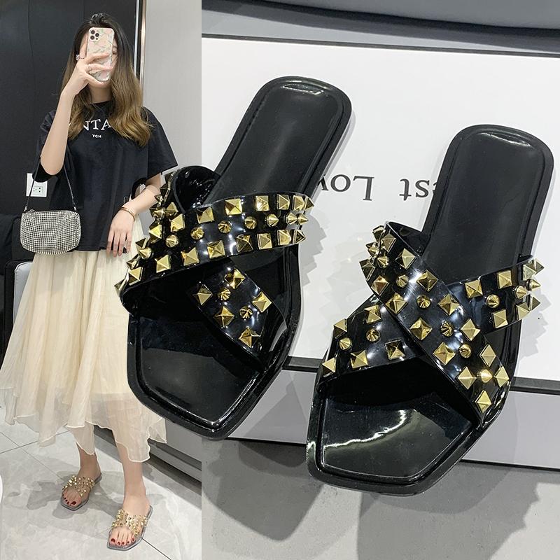 Fashion 2025 New Summer Style Comfortable Rivets Anti-Sli Fashionable Wear-resistant Casual Sexy Open-toe Fish Mouth Women's Slippers