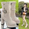 Модные винтажные ботинки до середины икры на толстом высоком каблуке на платформе для женщин, осенне-зимние, женские, в западном стиле, короткие ботильоны, ботинки для женщин