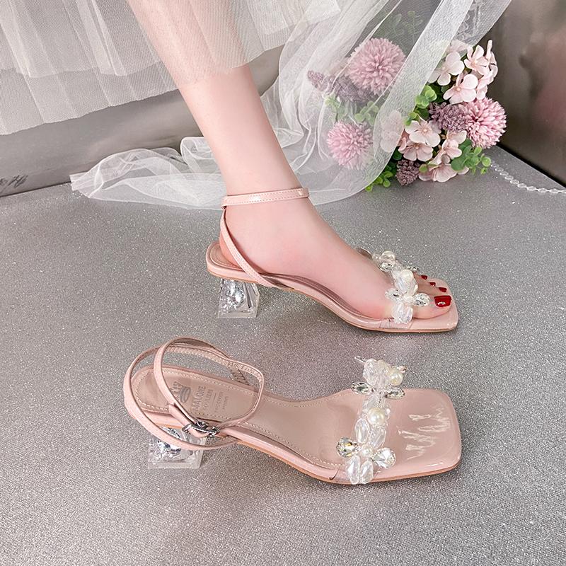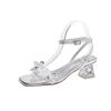 Модная обувь для женщин Летние новые босоножки со стразами с квадратным носком Женская модная обувь с открытым носком Сексуальные элегантные повседневные вечерние босоножки на высоком каблуке