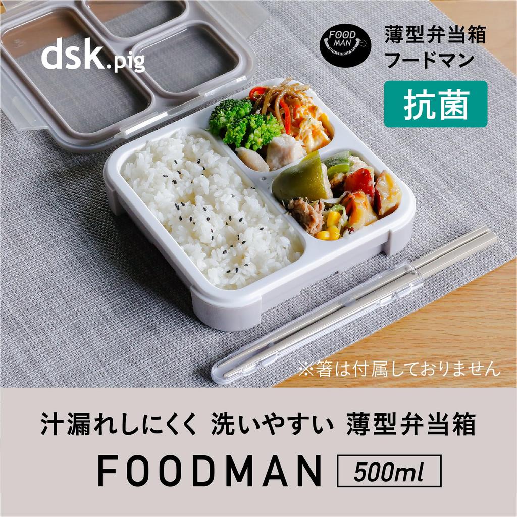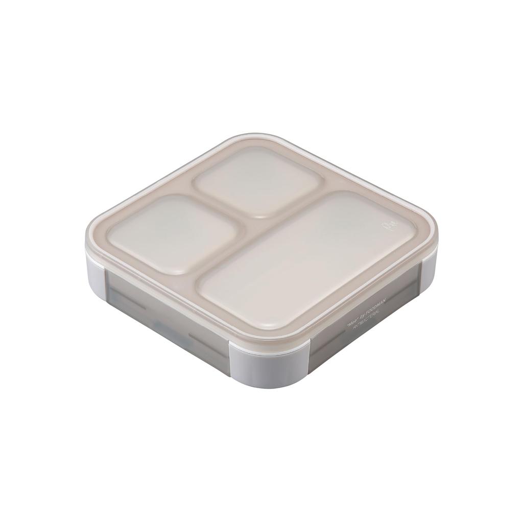 Foodman Bento Серый Надежный с двойной герметизацией для предотвращения DSK Box, Тонкий, Портативный, Устойчивый, 500 мл, Антибактериальный, Бежевый, 4-точечный замок, Протечки,