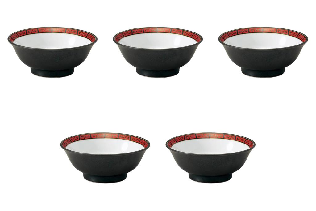 Set of 5 Kaminarimon Kuroumi Bowls x Ramen Bowls by Setomonohonpo 6.8" High-Based [21 8.5cm]