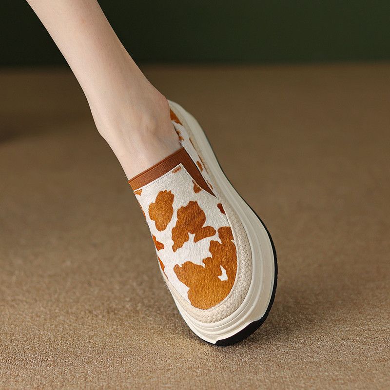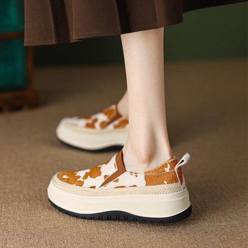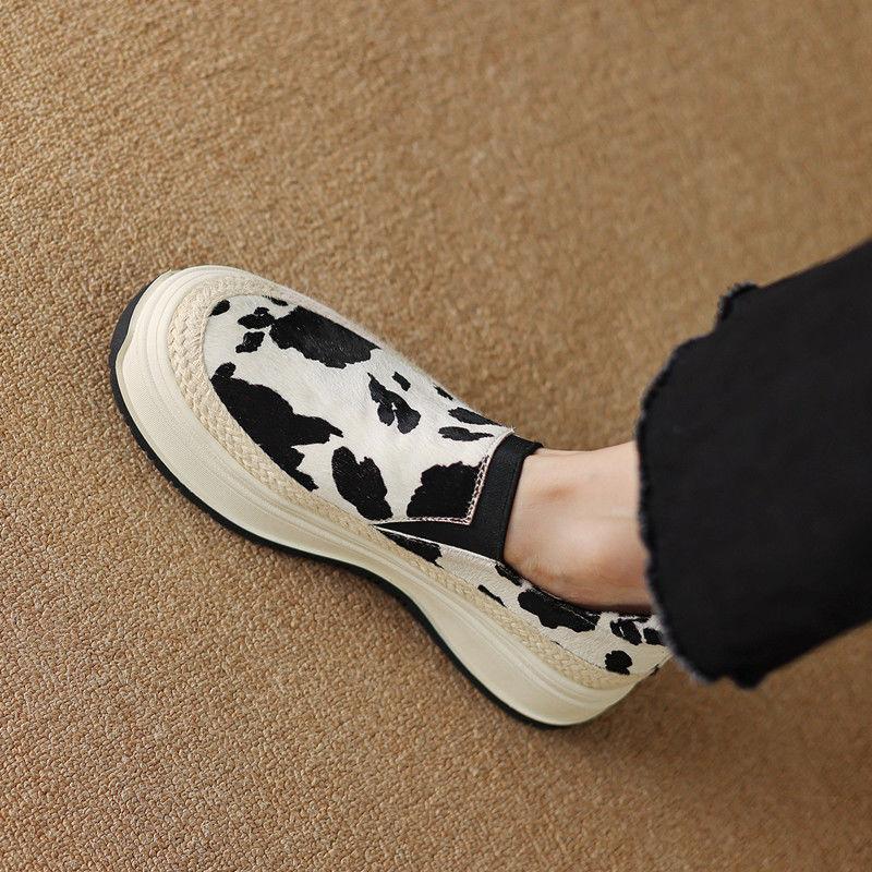 Модная обувь для женщин танкетка слипоны узор высокая платформа женская обувь 39 качество корейская 2025 новинка удобная и элегантная эстетика