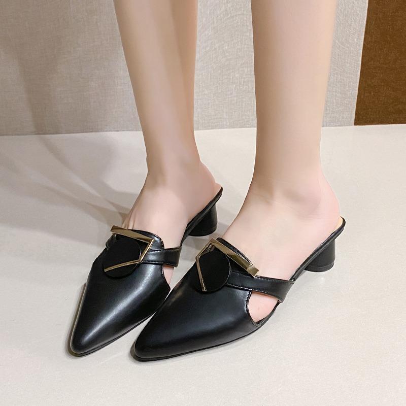 Модные женские туфли-лодочки на высоком каблуке с острым носком, весна 2025, новая модная верхняя одежда, шлепанцы баотоу, туфли-мюли на толстом каблуке