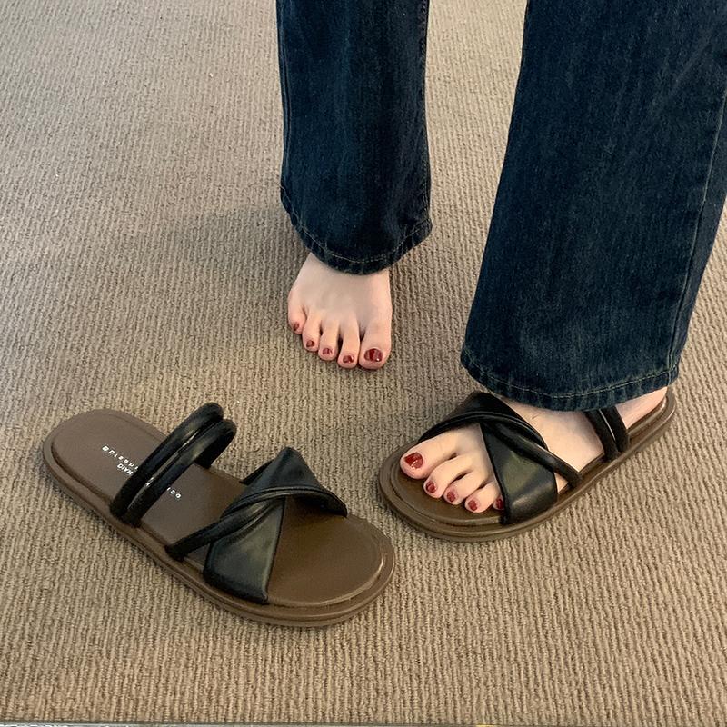 Модные плоские резиновые сандалии в римском стиле с открытым носком для женщин 2025 трендовые летние предложения роскошное высокое качество оригинальная винтажная женская обувь